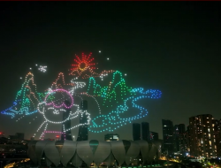 全球无人机网(www.81uav.cn)表演 国外媒体报道 除夕夜,在TheFloat@MarinaBay观看新加坡最大的同步无人机表演。STARISLAND的舞蹈编排涉及500架无人机,是一种多感官烟花音乐表演,将烟火,炫丽的灯光,3D环绕声和