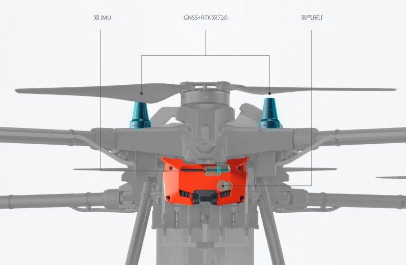 全新的模块化航电系统,配备双 IMU 及双气压计,采用动力信号冗余设计,保障飞行安全。GNSS + RTK 双冗余系统,带来厘米级定位精度的同时,支持双天线抗磁干扰技术,作业安全更进一步。